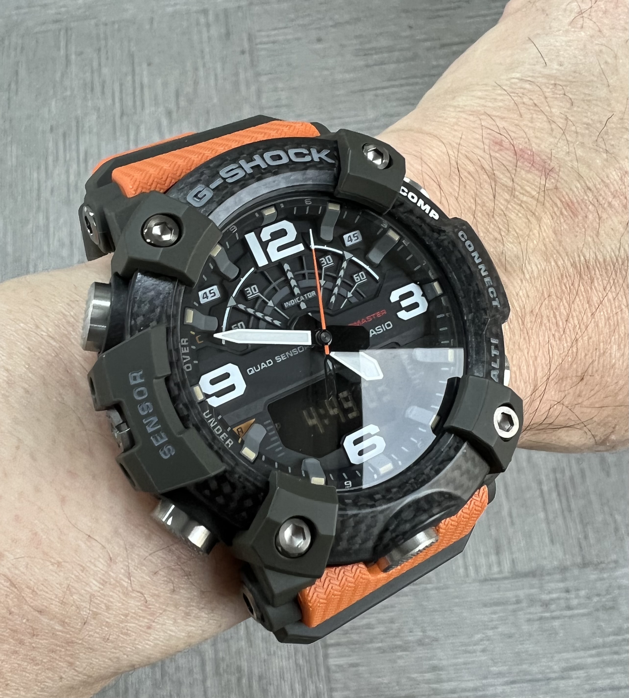 머드마스터 시리즈를 선택한 이유는 어떠한 상황에서도 시계를 벗고 그 행동을 할 상황을 없애자는 제 의도에 가장 잘 맞는 시리즈였기 때문입니다. 이름처럼 진흙탕에 굴러도 문제없고, 방수는 다이버 스펙은 아니어도 20 기압이라 큰 문제없을 듯하고, 충격에 강한 건 지샥의 태생적 특성에다가 카본과 레진으로 만들어져 무게도 가벼워 부담이 없었죠.