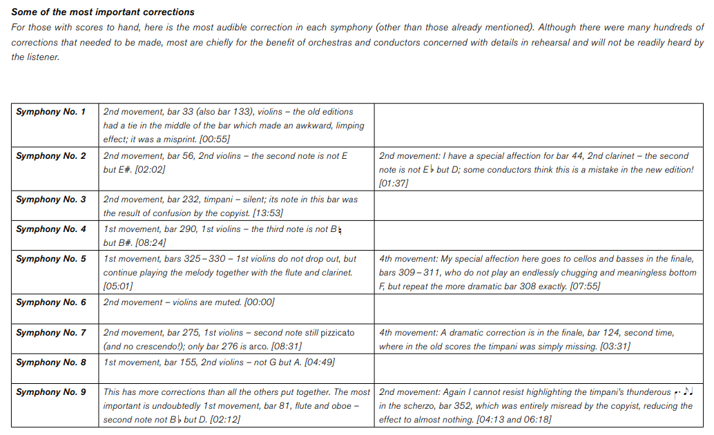 베토벤 교향곡의 악보가 확고한 기반에 의한 것이 아니라는 것을 알면 놀랄지도 모르지만, 사실 속사정은 훨씬 더 복잡합니다. 결정본(Urtext)을 만들려는 편집자에게 오리지널 자필 악보가 모든 세부 사항에서 정답일 수는 없습니다. 왜냐하면 필사자가 작성한 악보에 작곡가가 추가적인 수정을 가했기 때문입니다. 반면, 필사의 과정에서는 불가피하게 오류가 발생하는데, 모든 오류를 작곡가가 잡아낸 것도 아닙니다. 따라서 출판된 초판 악보에는 나름의 오류가 있습니다. 베토벤이 교정본을 받을 만큼 운이 좋았다고 하더라도 – 그는 끊임없이 출판사에 교정본을 요청했지만 요청은 자주 무시되고는 했습니다 – 우리는 그가 모든 오류를 발견했다고 기대하기 어렵습니다. 때로는 중간 필사자의 악보가 없다는 사실이 문제를 더 어렵게 만드는데, 우리는 친필 악보와 초판 인쇄 악보만 가지고 해독이 의문시될 때 어떤 것이 오류이고, 어떤 것이 베토벤이 교정단계에서 행한 수정일 가능성이 더 높은지에 대해 추론하거나, 경험에 의한 추측을 해야 합니다. 첫 세 교향곡과 같은 그의 초기 작품들 중 많은 작품은 심지어 베토벤의 자필 원고도 남아있지 않습니다. 출판사에서 더 이상 가치가 없다고 버렸을 것입니다. 따라서 작곡가가 최종적으로 의도한 대로 작품을 재구성하는 것은 상충되는 근거들의 복잡한 얽힘을 풀어내는 기나긴 추론 작업을 의미합니다.