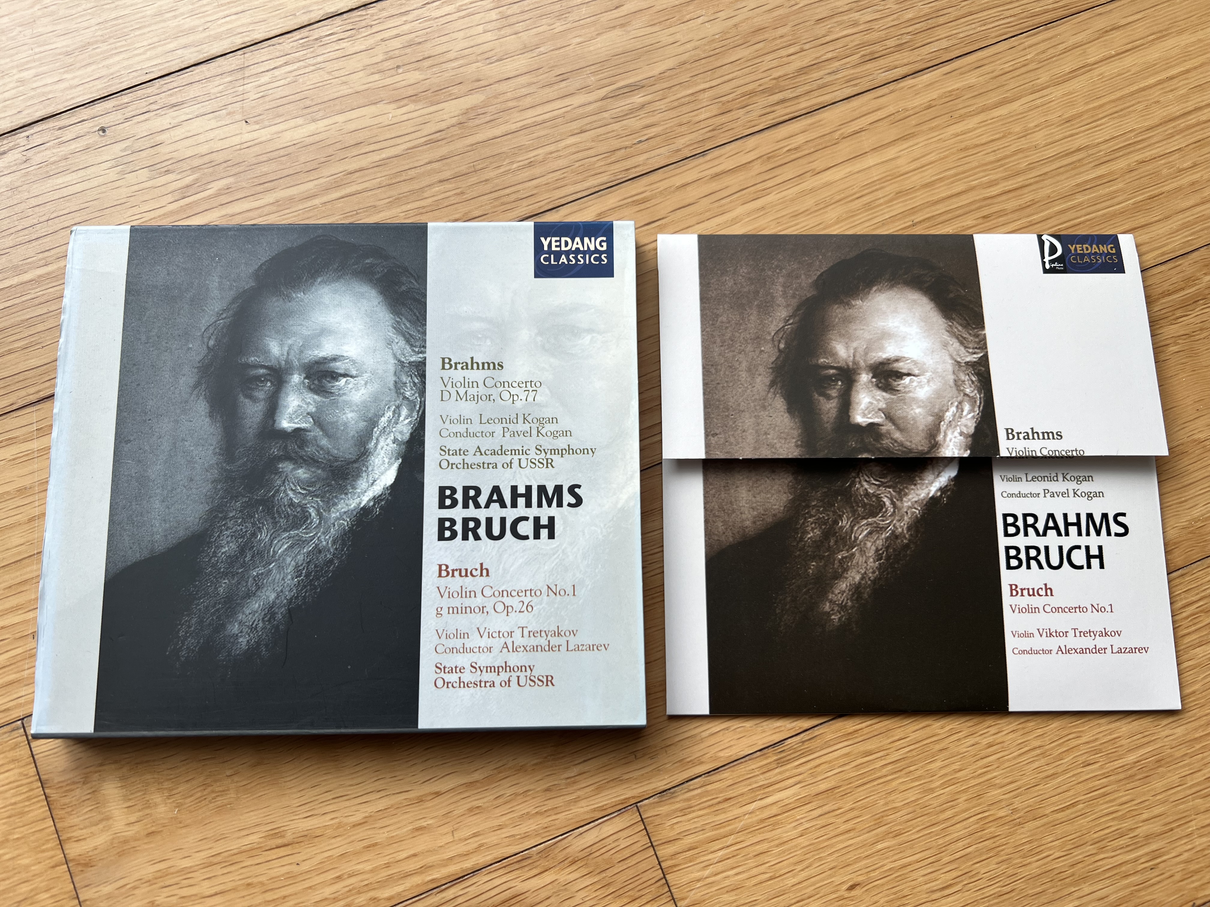 놀랍게도 이런 와중에 이 러시아 창고의 라이선스 권리를 얻은 곳이 양수경, 최성수 등의 음반을 발매하던 예당 엔터테인먼트였습니다. 오링 아웃케이스까지 씌워 <예당클래식스>라는 레이블로 발매된 이 시리즈는 2000년대 초반 잠깐이나마 국내 애호가들에게 다시금 옛 러시아 연주자들의 향취에 빠져들게 했으나 그 인기는 예전만 못했습니다. 그러다 이런 시리즈의 마지막이 늘 그렇듯 결국은 박스세트로 묶여 싸게 팔리는 운명에 처합니다. 이게 바로 <예당 클래식스 100> 또는 <러시아 클래식 100선>이라는 이름으로 불리는 세트입니다. 첫 발매 시에는 100장의 음반을 비록 종이 슬리브에 담았지만 겉 포장은 나무 박스에 담은 언발란스한 모습으로 발매되었다가 나중에는 가격을 더 낮춰 허름한 박스에 담아 공 CD 가격도 안 되는 가격에 판매되었습니다. 아래 사진들을 보시면 대충 그 흐름을 아실 수 있을 겁니다.
