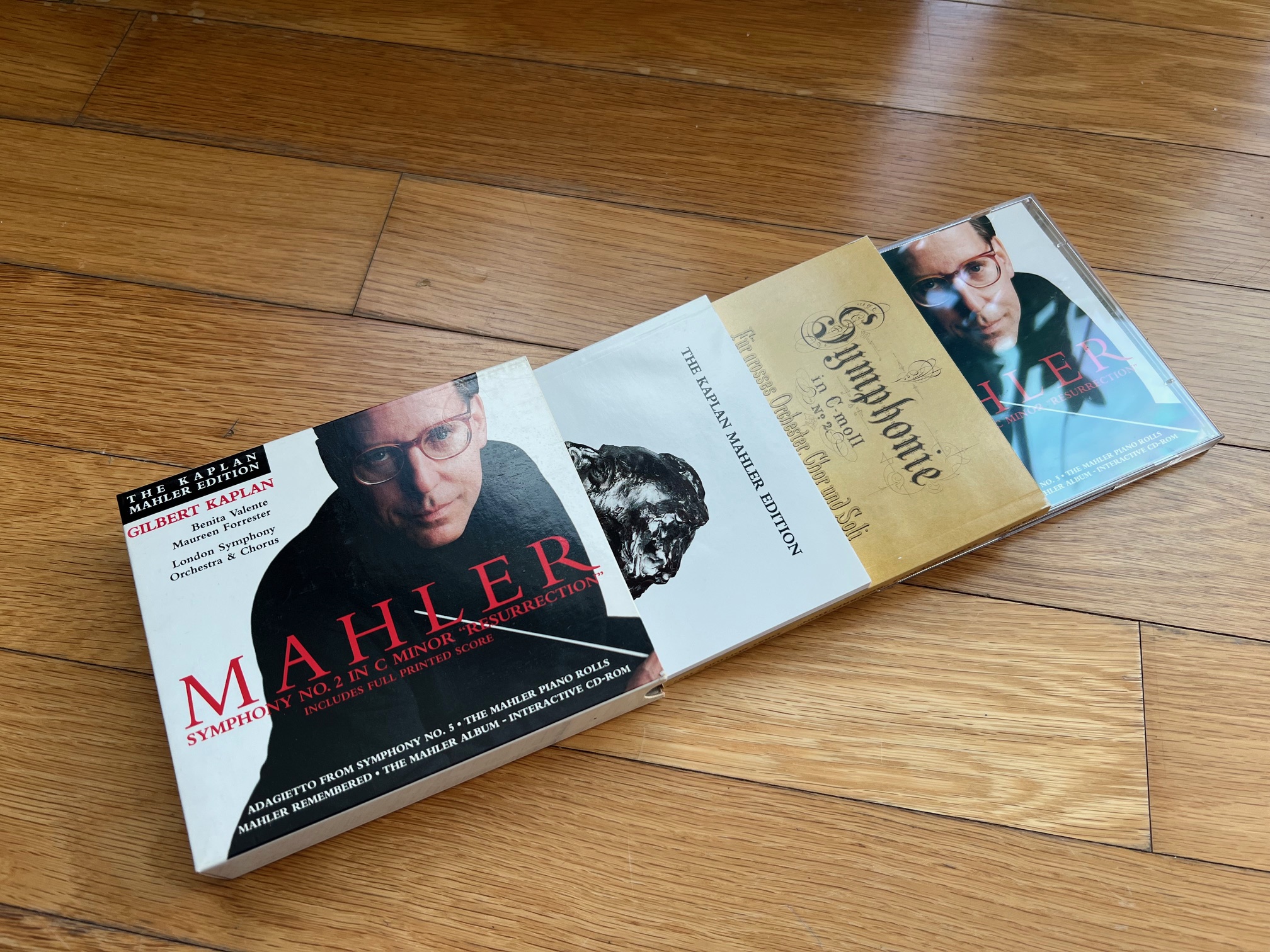 포장보다는 구성품이 호화로운 경우도 있는데, 영화 <타르>에 나온 엘리엇 카플란의 실제 모델인 길버트 카플란의 말러 교향곡 2번이 그런 사례입니다. 카플란의 박스는 말러 교향곡 2번과 보너스 음원을 담은 2장짜리 음반 외에 두터운 해설 책자는 물론, 교향곡 2번의 총보를 담았습니다. 사실 아마추어가 말러에 대한 열정과 재력으로 시작한 프로젝트인지라 연주가 특별히 뛰어나지도 않고, 오케스트라 총보의 경우에도 일반적으로는 딱히 필요하지도 않으니 그야말로 소수를 위한 패키지라 하겠습니다.