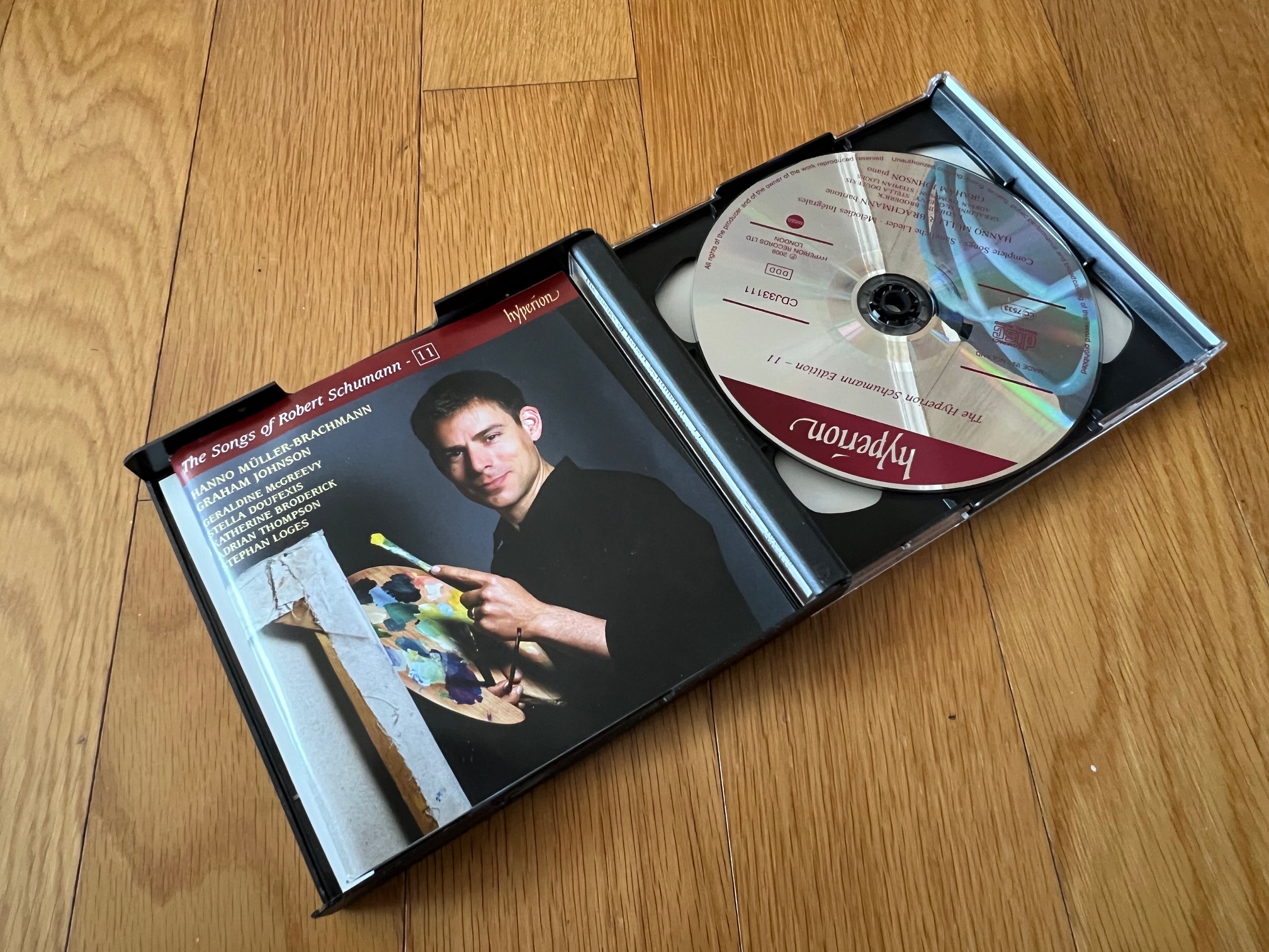 하이퍼리언의 슈베르트 가곡 전집은 피아노 협연자인 그레함 존슨의 두꺼운 해설로 유명한데, 처음에는 일반적 주얼케이스에 구겨 넣는 듯한 패키징으로 해결할 수 있었지만 자주 책자를 꺼내다 보면 찢어지는 사례도 제법 되었고, 책자를 넣고 빼기도 너무 힘들었습니다. 결국은 전에 언급한 이언 보스트리지의 <물방앗간의 아가씨> 음반부터 패키지를 바꾸어 책자를 넣고 빼기 쉽게 했죠. 이런 패키지로 슈베르트의 가곡 전집을 마무리 한 하이퍼리언은 다시 그레함 존슨의 주도로 슈만 가곡 전곡 녹음을 시작했는데, 이 녹음은 첫 음반부터 슈베르트 전집 후기형 패키지로 시작합니다.