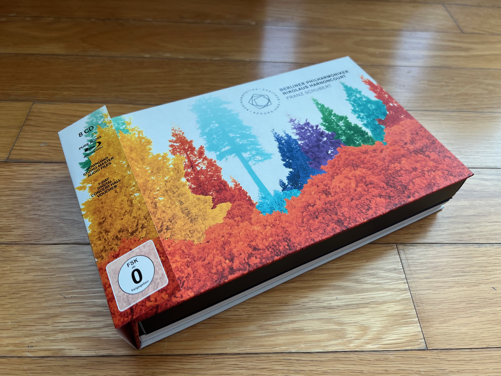 종이슬리브를 통해 원가절감을 하기 이전인 80~90년대 일반적인 박스는 적당한 두께의 아웃케이스에 담긴 주얼케이스에 음반을 담는 스타일이었습니다. 그중 아웃케이스의 종이질을 업그레이드하고 두껍게 하면 더 고급 버전이라 할 수 있었는데, 대표적인 것이 필립스에서 <스비아토슬라브 리히테르 오쏘라이즈드 에디션>이란 이름으로 발매한 21장짜리 세트였습니다. 이 세트는 아래 사진처럼 21장을 몇 권으로 나누어 각각 두꺼운 종이 아웃케이스를 제공했죠.