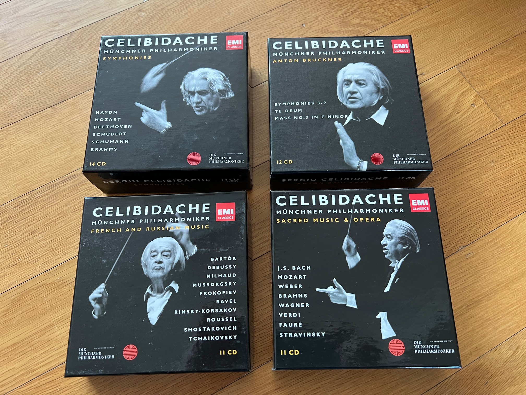 이후 EMI는 워너로 넘어가고 워너는 EMI라는 레이블 자체를 없앴기에 위 박스는 EMI로고를 달고 나온 마지막 첼리비다케 박스가 되었죠. 워너는 2018년 네 개의 박스를 하나로 묶은 것과 EMI로고를 지운 것 외에 특별한 수정 없이 보너스 CD 한 장 얹어서 48+1장짜리 <첼리비다케 뮌헨시대>라는 이름으로 한정판을 내놓습니다. 한정판이 아니라도 절판이 다반사인 음반/책 시장이니 이 박스도 금방 품절이 되어 사라졌죠.