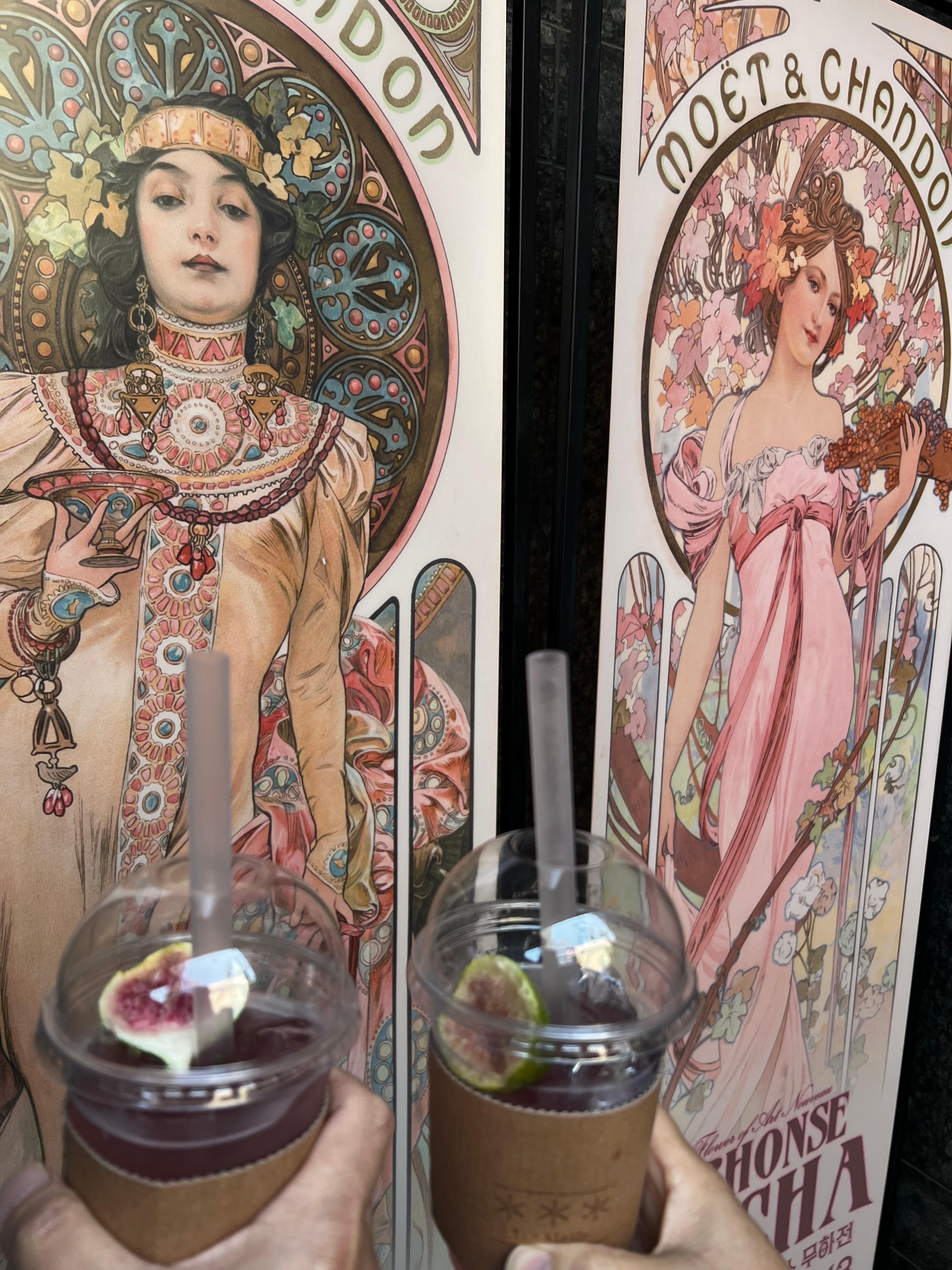 저는 음료가 제공되는 패키지 티켓이었던지라 전시를 보고 나서 <무하의 무화과>라는 재미있는 이름의 음료를 마실 수 있었습니다.