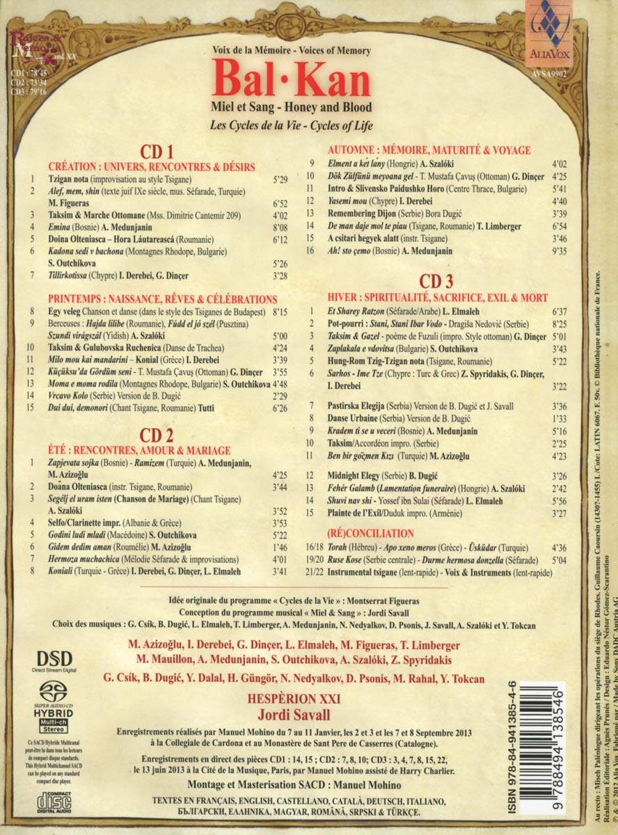 발칸이라는 지역의 역사적 과정을 따라, 그 사건과 관련한 음악을 배치하는 것은 쉽지 않을 듯합니다. 중요한 사건들이 벌어진 장소가 발칸이라 하더라도 상당수의 사건들은 발칸이 주인공이라기보다는 그와 연관된 세력들이 진행하는 커다란 흐름 속에서 발생한 사건들이었고, 발칸이라는 정체성으로 묶기에는 너무나 많은 다양성을 지닌 곳이 발칸이며, 그 역사라 할 수 있기 때문이죠. 그래서 음반은 발칸의 역사 속에 펼쳐진 다양한 음악의 스펙트럼을 보여주는 것에 전념하면서 각각의 개성과 서로 간에 주고받은 영향을 씨실과 날실로 직조해내고 있습니다. 세장의 SACD에 담긴 다양한 시대, 다양한 민족의 음악은 위에 적은 여섯 단계의 삶의 여정을 따라 인간 세상의 다양함과 그 속의 공통됨을 때로는 노래로, 때로는 합주로 보여줍니다. 각각의 곡에는 그 곡의 편성에 맞춰 다양한 음악가들이 참여했기에 조르디 사발은 이 음반에 있어 지휘자나 연주자보다는 (물론 여러 곡에 참여했습니다) 기획자나 코디네이터로서의 역할이 더 강하다 할 수 있겠습니다.