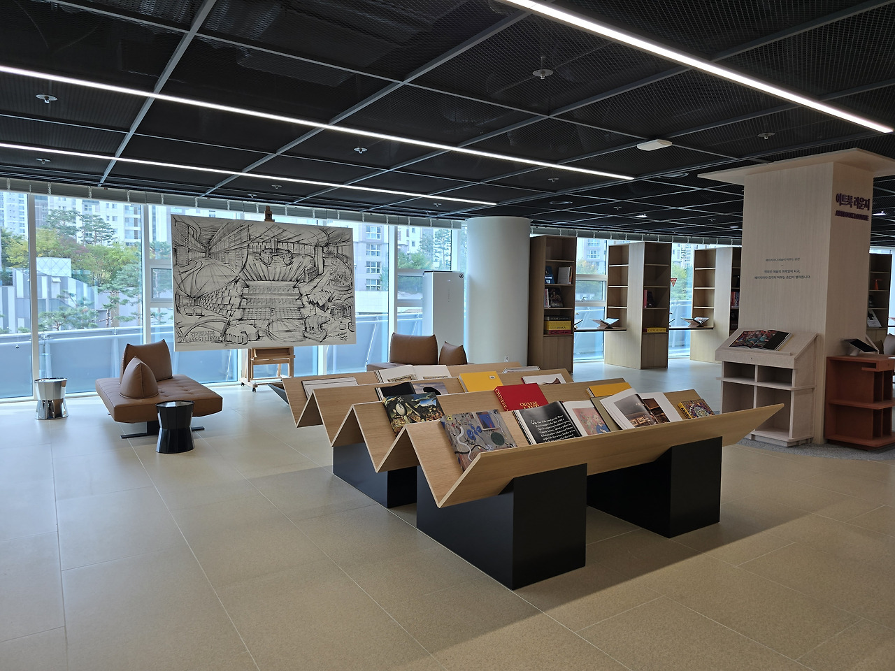 아울러 개인돈으로 사 보기는 힘든 값비싼 (권당 수백만 원에 달하는 책도 있다고 합니다) 아트북을 비치한 것은 좋은데, 이 역시 열람보다는 장식의 느낌으로 다가옵니다. 진열방식이 조용히 앉아 열람할 수 없게 되어 있어요. 책의 크기나 가격을 생각하면 움직이지 못하니 그 장소에서 볼 수밖에 없게 되어 있는 것은 좋으나 배치가 열람을 전제로 하지 않은 이상한 배치에 앉지는 못하고 서서 열람해야 하고 서서보는 자세로도 높이가 낮아 불편한 것을 생각하면, 이 비싼 책들 역시 인테리어 소품이나 방문객이 한두 번 넘겨보고 가는 체험형 아이템에 불과합니다. 들고 가서 볼 수도 있겠지만 책상이 없는 열람 구조상 무릎에 올려놓고 보아야하기에 힘들고, 책의 무게 때문에 파손되기도 쉬울 듯합니다.