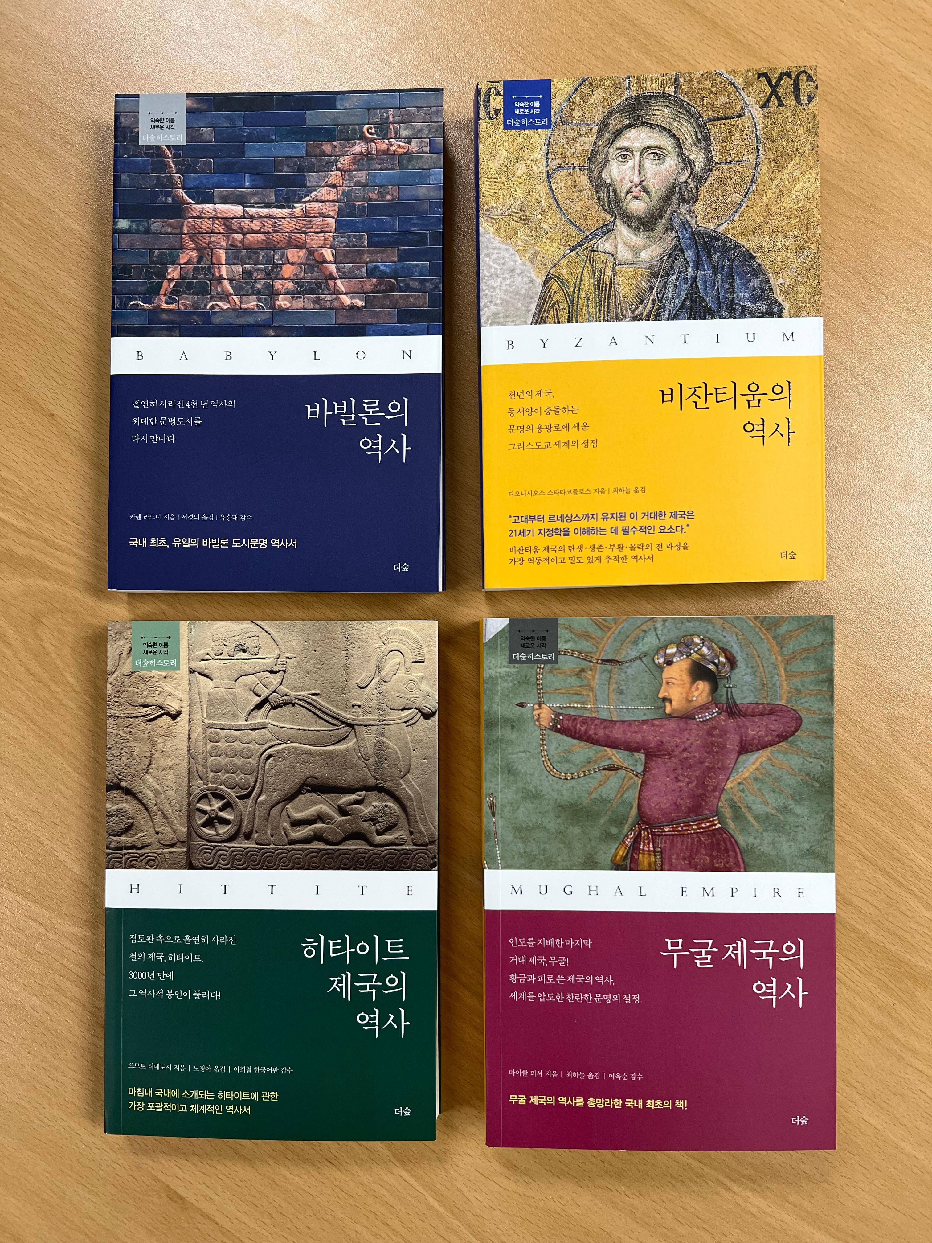 첫 출간본인 바빌론의 역사가 2021년, 최신 출간인 무굴제국의 역사가 작년 4월에 출간되었느니 아직 이 시리즈가 계속될지, 네 권으로 끝일지는 짐작하기 힘듭니다만, 무굴제국의 역사 출간 시에만 해도 책날개 예고 등으로 볼 때 준비하고 있는 다섯 번째 책은 없는 듯해서 약간의 불안함은 있습니다. 더구나 더숲이라는 출판사가 역사책 전문 출판사도 아니니 말이지요.